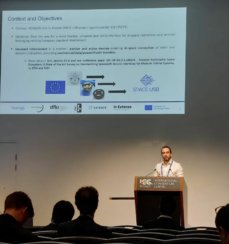 The Space USB consortium was proud to take part in the International Astronautical Congress (IAC) 2025, held in Sydney, Australia, from 29 September to 3 October 2025. Two technical papers were presented during the conference, reflecting the project’s progress and contribution to the development of a standardized, interoperable interface for in-orbit servicing and modular spacecraft operations.